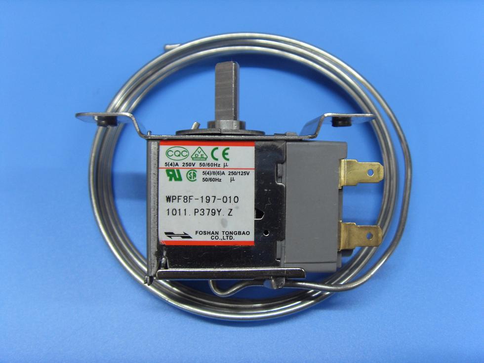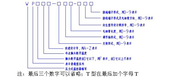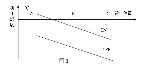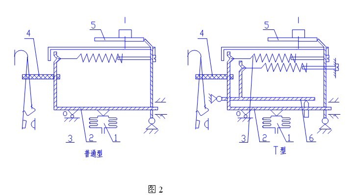 見圖2,感溫部分1溫度變化時產(chǎn)生壓力變化而推動承壓板2沿支點O運動,承壓板2受拉簧3的拉力得到平衡,并同時推動推桿4運動,推桿推動開關(guān)而使開關(guān)開啟或斷開。當(dāng)旋轉(zhuǎn)調(diào)節(jié)輪5時改變拉簧3的拉力,從而得到不同的溫度特性。T型結(jié)構(gòu)中機構(gòu)6起增大開停差作用。