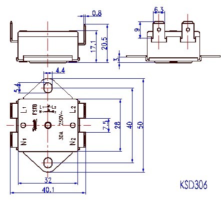KSD306和KSD308系列產(chǎn)品屬于手動(dòng)復(fù)位型的保護(hù)類溫控器,為雙刀結(jié)構(gòu),安全可靠,適用于大功率電熱水器(尤其是儲(chǔ)水式電熱水器)的過熱保護(hù)。它利用碟形雙金屬片在溫度達(dá)到一定值時(shí)產(chǎn)生瞬間突跳的原理,通過機(jī)構(gòu)轉(zhuǎn)換,讓兩對觸點(diǎn)迅速分離,從而使兩相電路同時(shí)斷開,達(dá)到完全切斷電源的目的。當(dāng)要重新接通電源時(shí),需要按下復(fù)位桿。